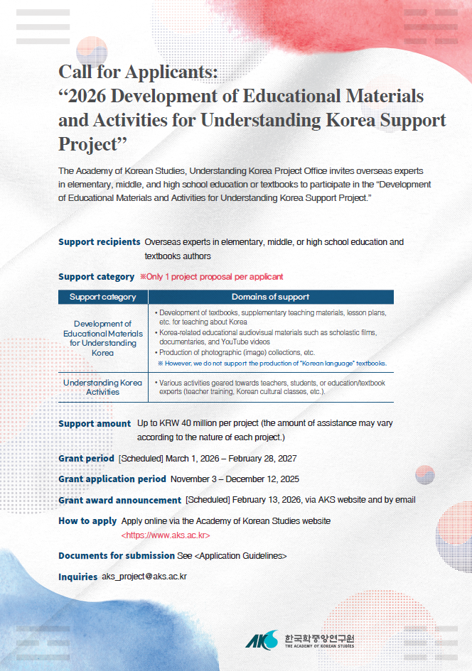 Call for Applicants: 2026 Development of Educational Materials and Activities for Understanding Korea Support Project