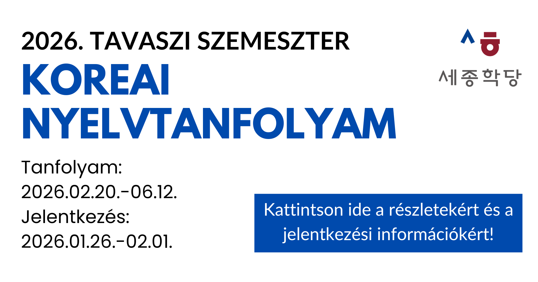 2026. tavaszi szemeszter: koreai nyelvtanfolyam // Sejong Classes of Spring Semester 2026