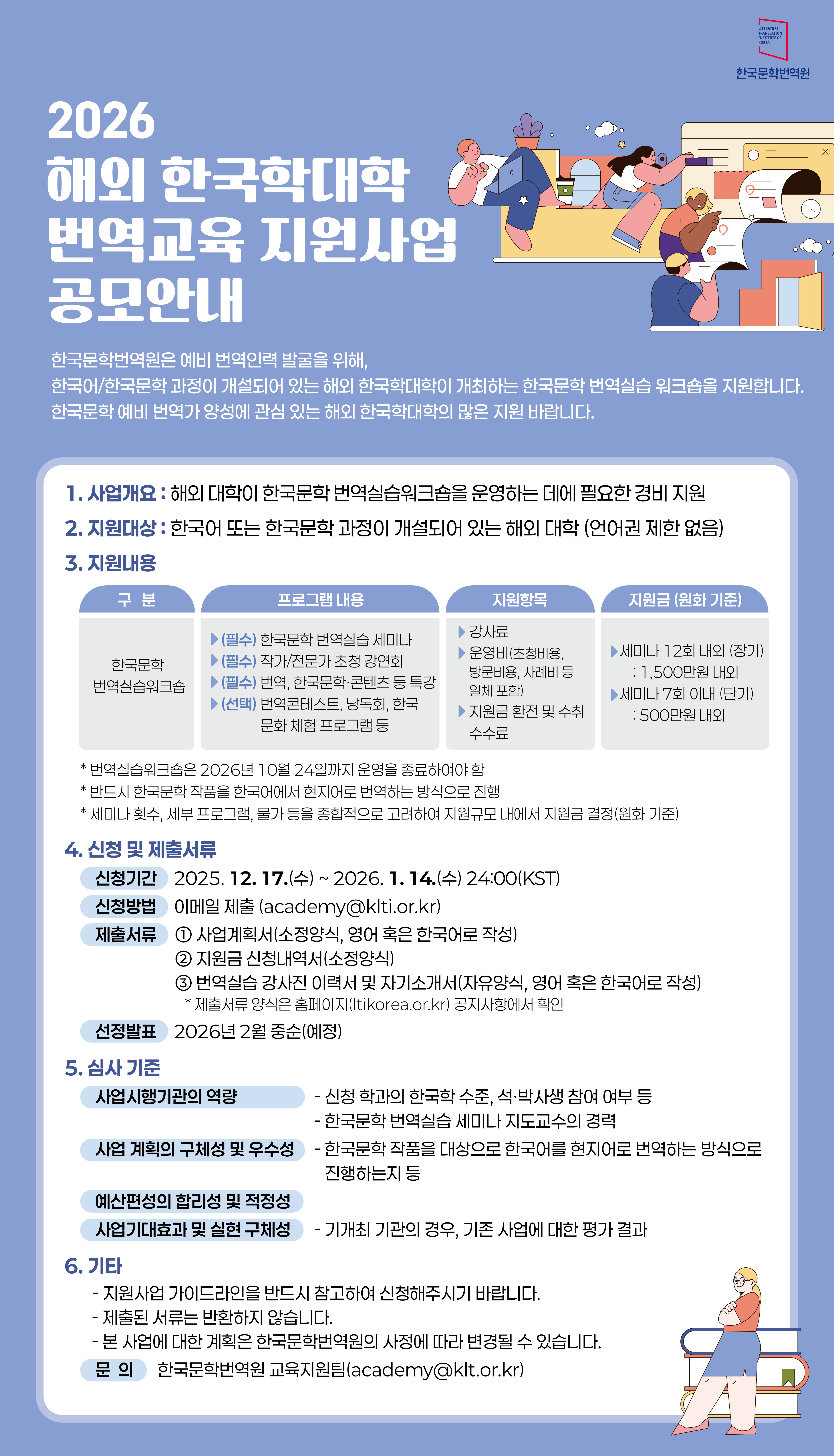 2026 해외 한국학대학 번역교육 지원사업 공모
